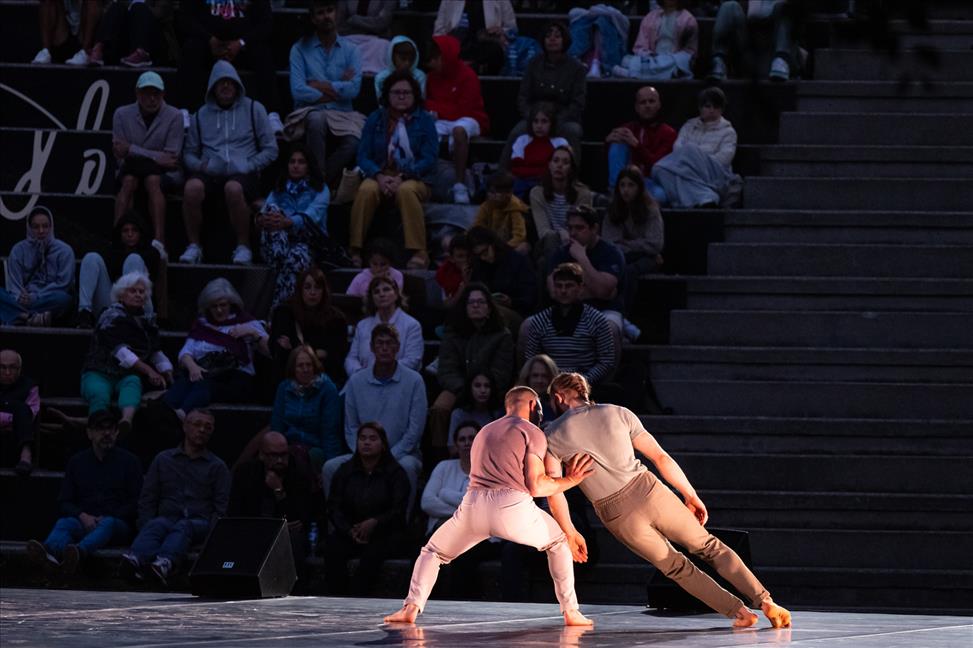 La noche volvió a ofrecer al público cuatro espectáculos. «Azahar» de la compañía extremeña Marcat Dance e interpretada por Marilisa Gallicchio y Alessia Sinato mostró al público la belleza del paisaje andaluz a través de la alegría del movimiento y la música, entrelazados con la tradición, el folklore y la cultura. Seguida llegó «Dual», una creación 0e3 interpretación grancanaria, de Andrea Pérez y Abián Hernández, que ahonda en la idea de que el humano es un ser repleto de contradicciones, dualidades y fuerzas opuestas. «Íor», también llegada desde Cataluña e interpretada por Marc Fernández y Julio León, realizó un viaje entre la dureza y la fragilidad con dos cuerpos que buscan la simbiosis perfecta para avanzar juntos. El broche final corrió a cargo «Paseante» de la madrileña La Venidera, que interpretada por Andrea Antó, Albert Hernández e Irene Tena invitó a los espectadores a recorrer un camino donde los bailarines y la danza actúan como guías.