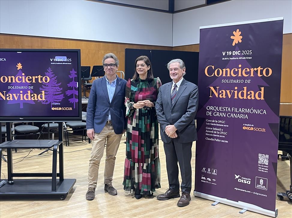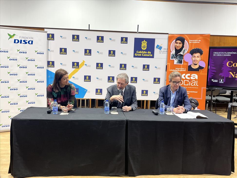 La presentación del evento contó con Pedro Justo Brito, vicepresidente de la Fundación OFGC; Sara Mateos, directora de la Fundación DISA; y José María Segura, director general de ECCA Social, quienes animaron al público grancanario a participar en esta iniciativa que une cultura y compromiso social.
